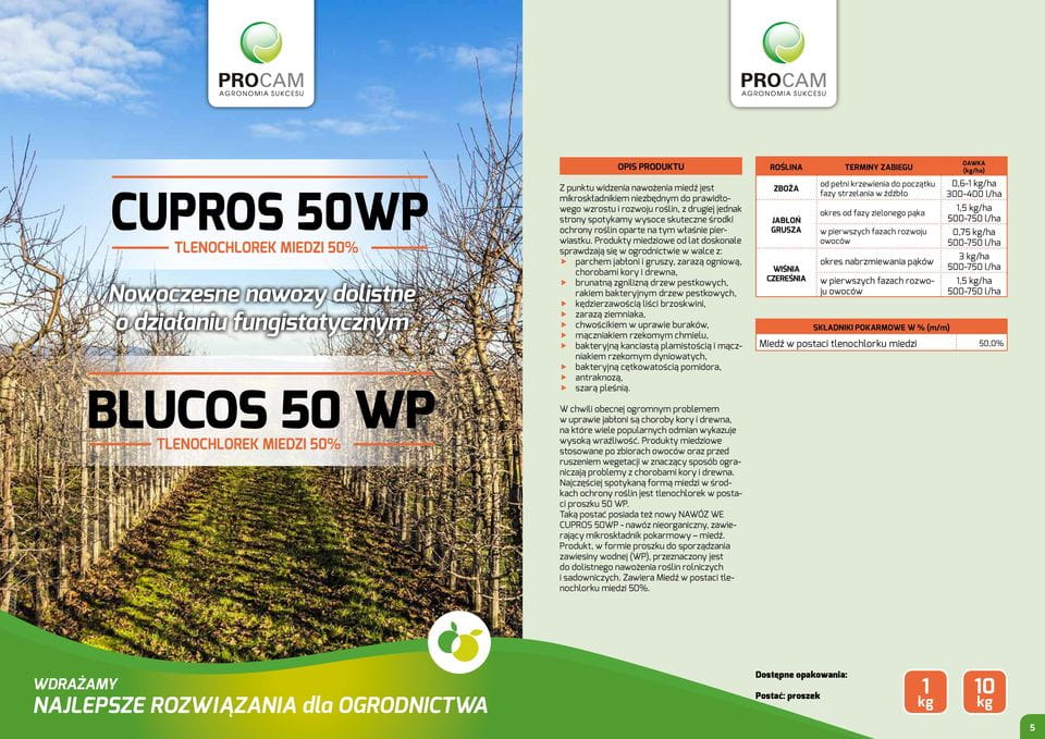 BLUCOS 50 WP należy do podstawowych substancji wykorzystywanych w ochronie roślin ogrodniczych. Jako produkt znajduje także zastosowanie w uprawach ekologicznych. W nomenklaturze zaliczana jest do fungicydów (grzybobójczych) gdzie tworzy podstawową grupę fungicydową (grzybobójczą), to jej właściwości i spektrum działania klasyfikują ją nawet bardziej jako bakteriocyd, czyli substancję o działaniu bakteriobójczym.