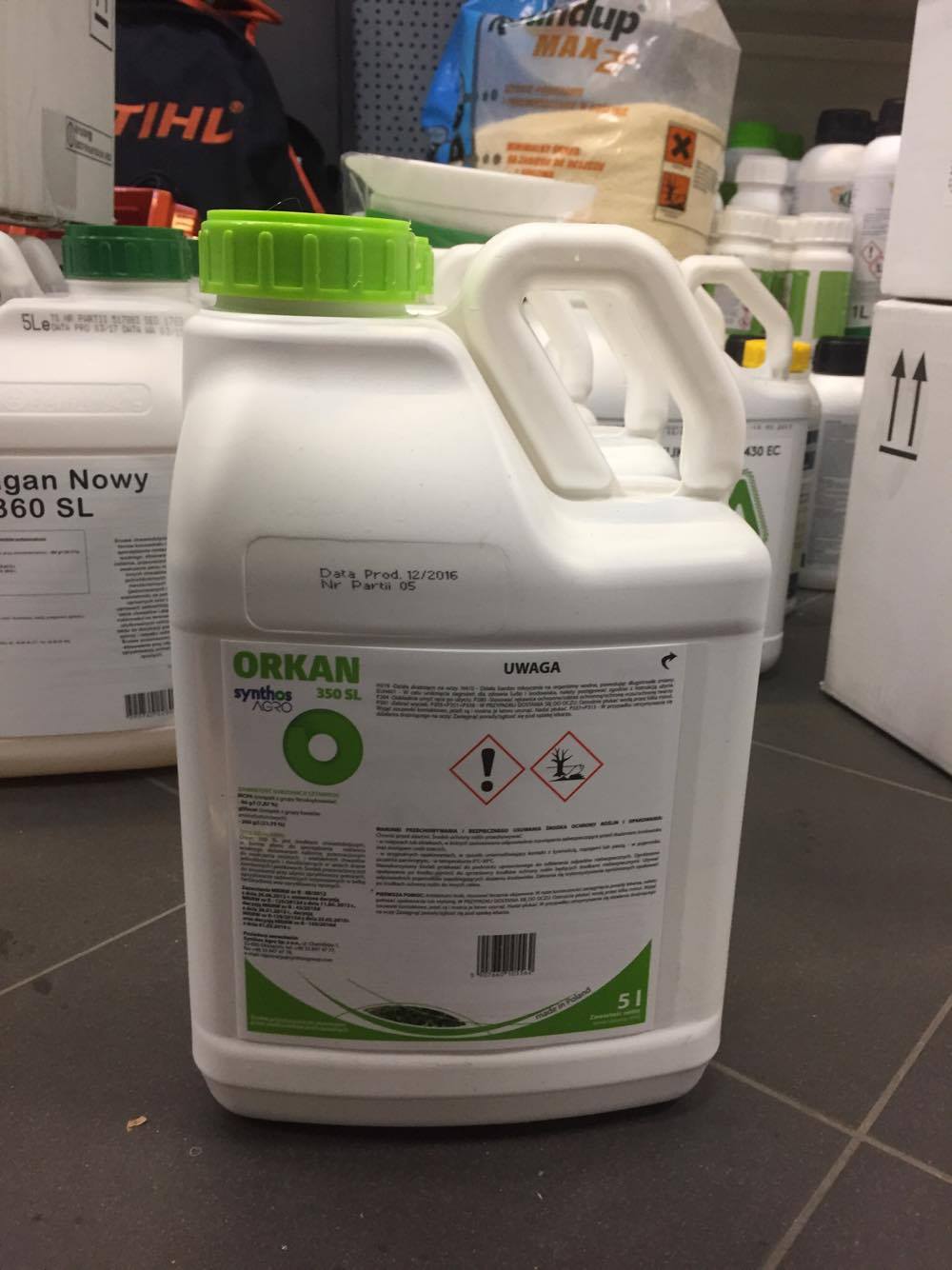 Orkan 350 SL Środek chwastobójczy, w formie koncentratu do sporządzania roztworu wodnego, stosowany nalistnie, przeznaczony do zwalczania chwastów jednoliściennych i dwuliściennych w sadach. Środek pobierany jest poprzez liście, a następnie przemieszczany do korzeni i rozłogów chwastów powodując zahamowanie ich wzrostu i rozwoju. Pierwsze objawy działania środka na chwasty widoczne są po upływie 7-14 dni od wykonania zabiegu. Zamieranie chwastów następuje po około 30 dniach. Wysoka temperatura i wilgotność powietrza oraz silne nasłonecznienie przyspieszają działanie środka.