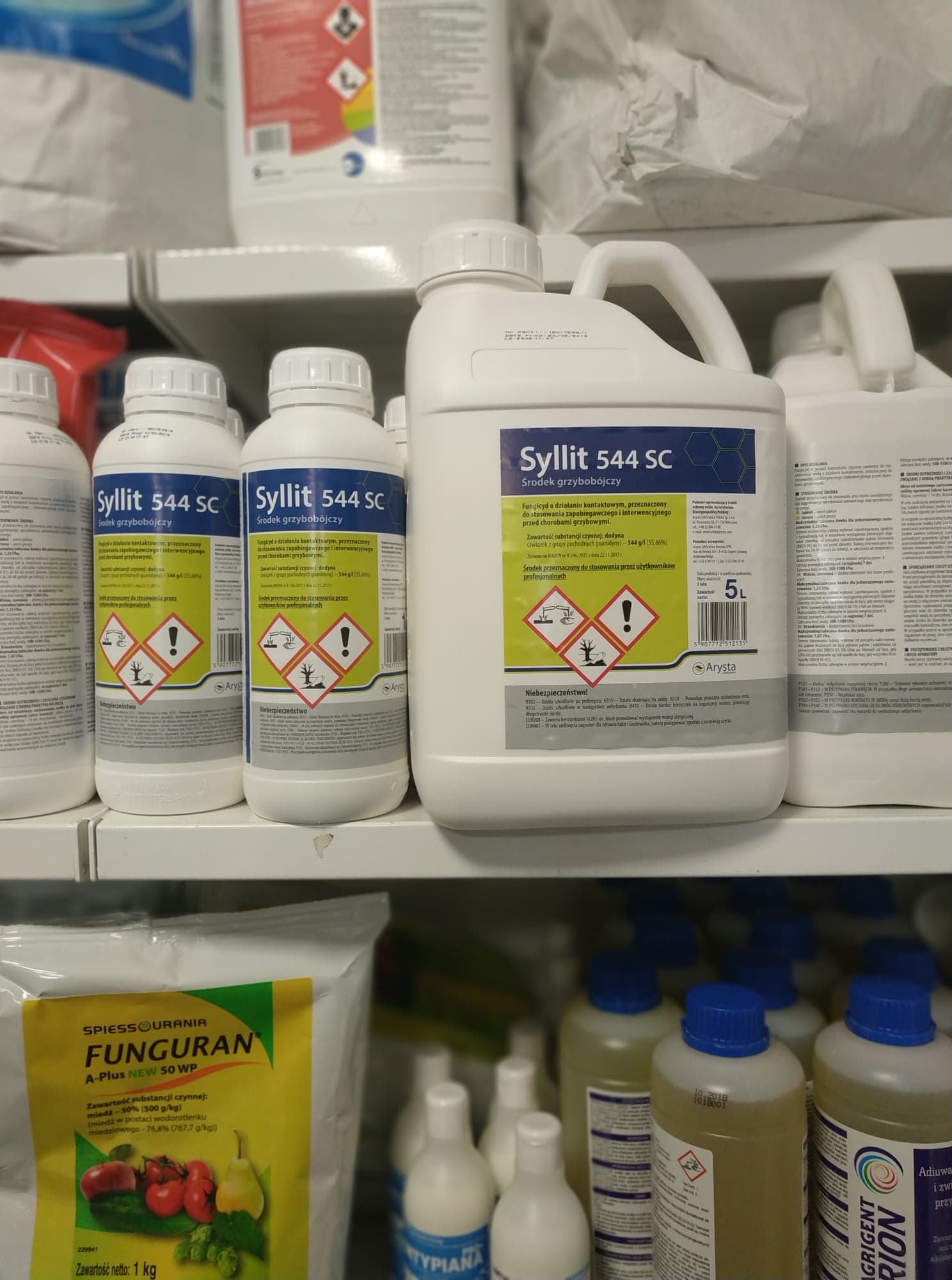 3 Załącznik do zezwolenia MRiRW nr R- 246/2017 z dnia 22.11.2017 r. Etykieta środka ochrony roślin Syllit 544 SC – załącznik do zezwolenia MRiRW Ze względu na ograniczoną liczbę zabiegów do dwóch, stosowanie wyłącznie środka Syllit 544 SC może być niewystarczające do zwalczania wymienionych na etykiecie chorób. Środek zawiera substancję czynną dodyna - związek z grupy pochodnych guanidyny (grupa FRAC U12). W ramach strategii przeciwdziałania odporności sprawców chorób zaleca się przemienne stosowanie środka z innymi środkami grzybobójczymi, zawierającymi substancje czynne z innych grup chemicznych, o odmiennym mechanizmie działania. SPORZĄDZANIE CIECZY UŻYTKOWEJ Ciecz użytkową przygotować bezpośrednio przed zastosowaniem. Przed przystąpieniem do sporządzania cieczy użytkowej dokładnie ustalić potrzebną jej objętość wraz z ilością środka. Napełniając opryskiwacz postępować zgodnie z instrukcją producenta opryskiwacza. W przypadku braku instrukcji odmierzoną ilość środka dodać do zbiornika opryskiwacza napełnionego częściowo wodą (z włączonym mieszadłem). Opróżnione opakowania przepłukać trzykrotnie wodą, a popłuczyny wlać do zbiornika opryskiwacza z cieczą użytkową, uzupełnić wodą do potrzebnej ilości i dokładnie wymieszać. Po wlaniu środka do zbiornika opryskiwacza niewyposażonego w mieszadło hydrauliczne, ciecz mechanicznie wymieszać. W przypadku przerw w opryskiwaniu, przed ponownym przystąpieniem do pracy, ciecz użytkową w zbiorniku opryskiwacza dokładnie wymieszać. POSTĘPOWANIE Z RESZTKAMI CIECZY UŻYTKOWEJ I MYCIE APARATURY Resztki cieczy użytkowej należy: –jeżeli jest to możliwe, po uprzednim rozcieńczeniu zużyć na powierzchni, na której przeprowadzono zabieg (nie wcześniej niż 6 godzin po zakończeniu zabiegu) lub–unieszkodliwić z wykorzystaniem rozwiązań technicznych zapewniających biologiczną degradację substancji czynnych środków ochrony roślin lub –unieszkodliwić w inny sposób, zgodny z przepisami o odpadach. Po pracy aparaturę dokładnie wymyć. Z wodą użytą do mycia aparatury postąpić tak, jak z resztkami cieczy użytkowej, stosując te same środki ochrony osobistej. ŚRODKI OSTROŻNOŚCI DLA OSÓB STOSUJĄCYCH ŚRODEK, PRACOWNIKÓW ORAZ OSÓB POSTRONNYCH Przed zastosowaniem środka należy poinformować o tym fakcie wszystkie zainteresowane strony, które mogą być narażone na znoszenie cieczy użytkowej i które zwróciły się o taką informację.Nie jeść, nie pić ani nie palić podczas używania produktu. Stosować rękawice ochronne, odzież roboczą i ochronę oczu/twarzy podczas przygotowywania cieczy użytkowej oraz rękawice ochronne, odzież roboczą i odpowiednie obuwie (np. kalosze) podczas wykonywania zabiegu. Unikać wdychania rozpylonej cieczy. Dokładnie umyć ręce po użyciu. Zanieczyszczoną odzież zdjąć i wyprać przed ponownym użyciem. Okres od zastosowania środka do dnia, w którym na obszar, na którym zastosowano środek mogą wejść ludzie oraz zostać wprowadzone zwierzęta (okres prewencji): 2 dni ŚRODKI OSTROŻNOŚCI ZWIĄZANE Z OCHRONĄ ŚRODOWISKA NATURALNEGO Nie zanieczyszczać wód środkiem ochrony roślin lub jego opakowaniem. Nie myć aparatury w pobliżu wód powierzchniowych. Unikać zanieczyszczania wód poprzez rowy odwadniające z gospodarstw i dróg.W czasie kwitnienia drzew owocowych zaleca się stosowanie środka poza okresami aktywności pszczół.