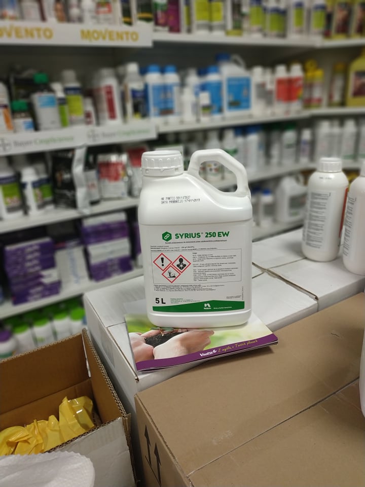 H319 – Działa drażniąco na oczy. H361d – Podejrzewa się, że działa szkodliwie na dziecko w łonie matki. H 410 - Działa bardzo toksycznie na organizmy wodne, powodując długotrwałe skutki.EUH 401 W celu uniknięcia zagrożeń dla zdrowia ludzi i środowiska, należy postępować zgodnie z instrukcją użycia.P201 - Przed użyciem zapoznać się ze specjalnymi środkami ostrożności. P280 - Stosować rękawice ochronne/odzież ochronną/ochronę oczu/ochronę twarzy.P305 + P351 + P338 - W PRZYPADKU DOSTANIA SIĘ DO OCZU: Ostrożnie płukać wodą przez kilka minut. Wyjąć soczewki kontaktowe, jeżeli są i można je łatwo usunąć. Nadal płukać. P391 - Zebrać wyciek. OPIS DZIAŁANIA SYRIUS 250 EW jest środkiem grzybobójczym w formie emulsji olejowej w wodzie do sporządzania emulsji wodnej o działaniu układowym do stosowania zapobiegawczego i interwencyjnego w ochronie pszenicy ozimej, jęczmienia jarego, jęczmienia ozimego oraz rzepaku ozimego przed chorobami grzybowymi. Środek przeznaczony do stosowania przy użyciu opryskiwaczy polowych.